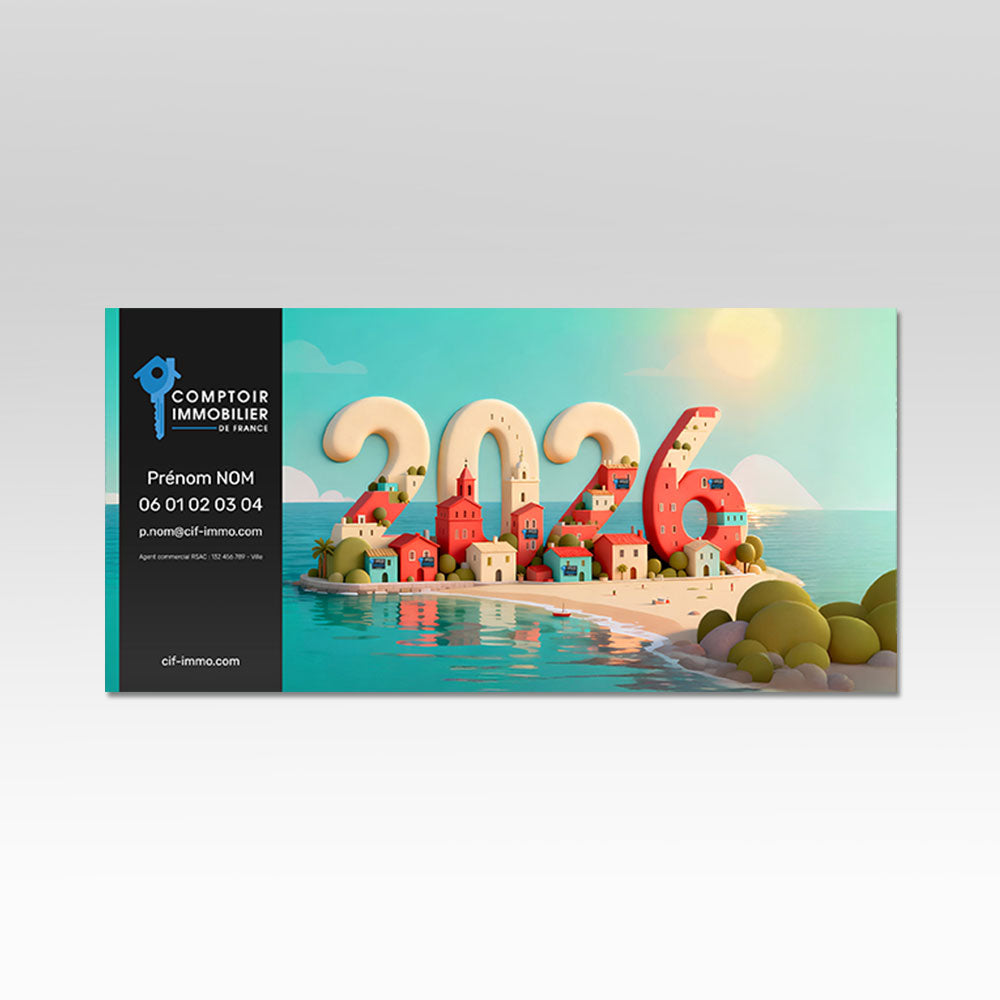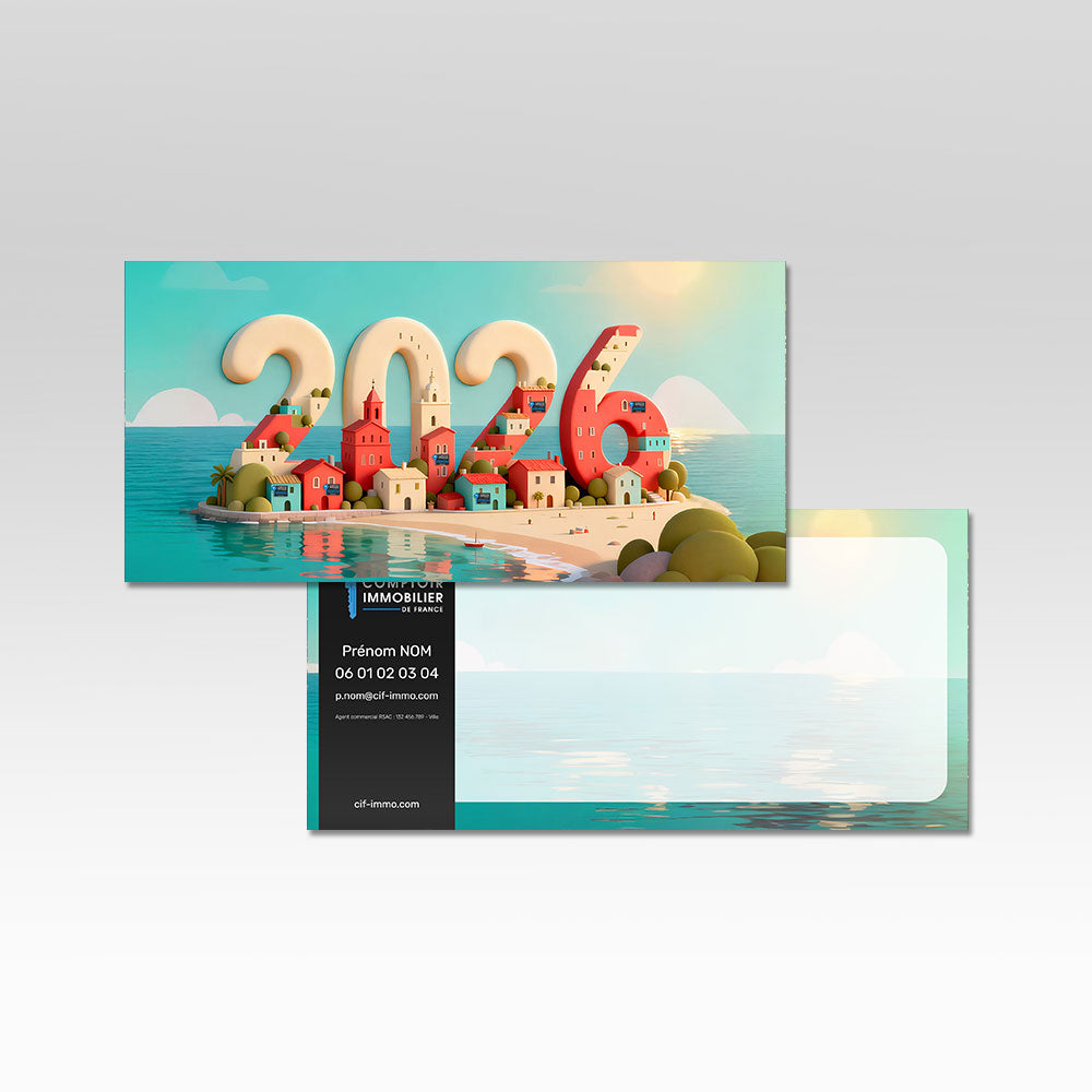 Carte de Vœux 21 x10 cm impression recto verso sur papier 350g